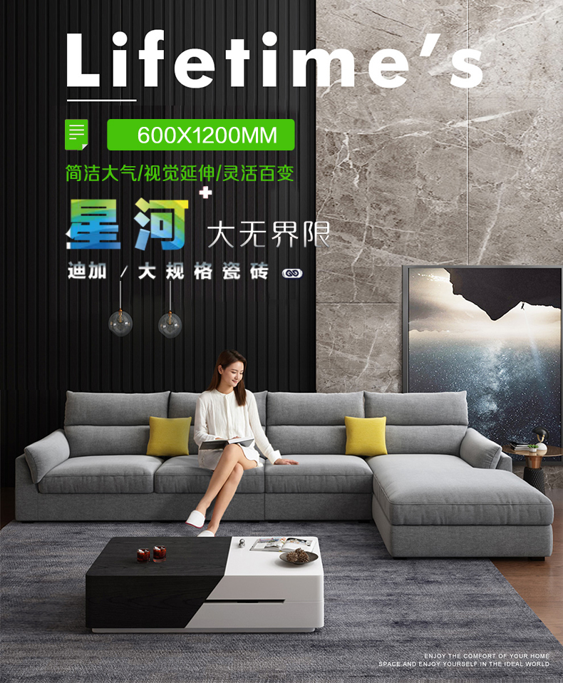 开云体育-开云(中国)一站式服务官方网站600x1200MM系列不仅适用于地面铺贴,上墙一点也不含糊。不用切割加工,产品可以直接上墙。